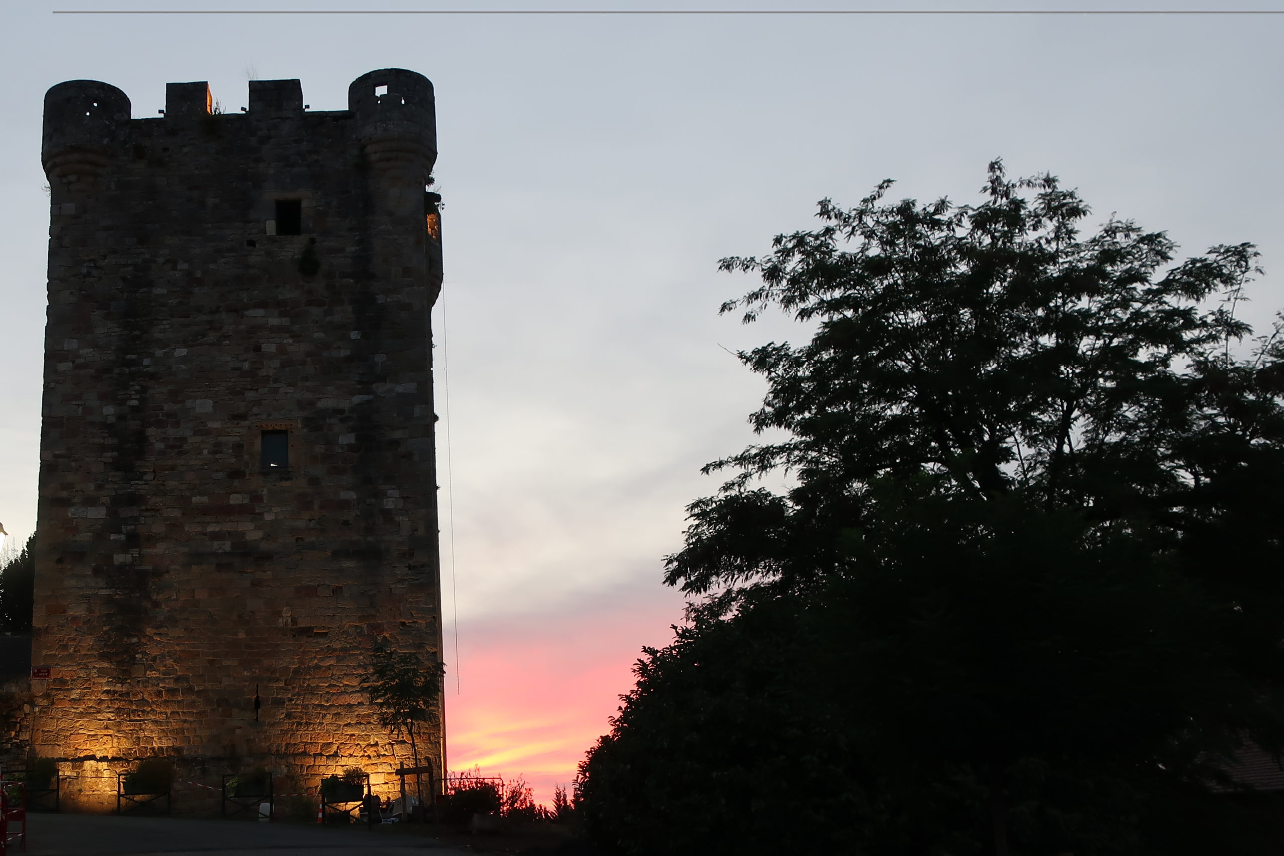 À l’est, le ciel se voile, le soleil faiblit. Un, puis deux, vols d’étourneaux passent devant le donjon. Les oiseaux aussi rentrent chez eux à la tombée du jour.